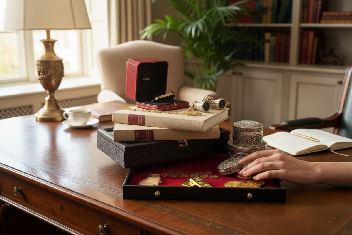 Le département Numismatique, Argent et Or regroupe notre expertise dédiée à l’achat et à la vente de monnaies et lingots en or et argent, ainsi qu’au rachat de bijoux et d’argenterie destinés à la fonte. Nous évaluons chaque pièce avec précision — poids, titre, état — et proposons des offres basées sur le cours du jour, dans un cadre sécurisé et transparent. Qu’il s’agisse de pièces d’investissement, de bijoux anciens ou d’argenterie héritée, nous garantissons une analyse professionnelle et un paiement immédiat, avec la discrétion et la rigueur propres aux standards suisses.